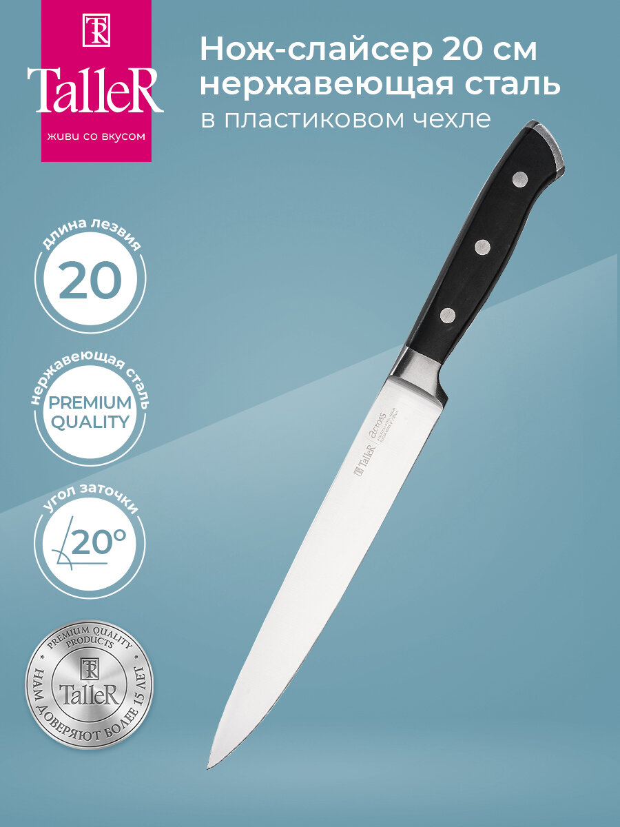 Нож для нарезки TALLER 22021 20 см, черный интересное: