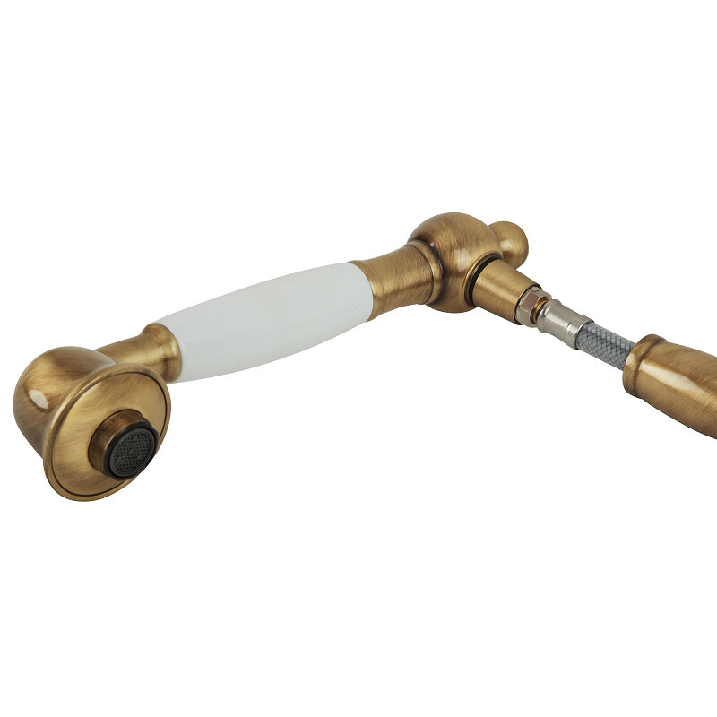 Смеситель для кухни с выдвижной лейкой, ручка белая/бронза Migliore Cucina Oxford ML.CUC-6388.BI.BR