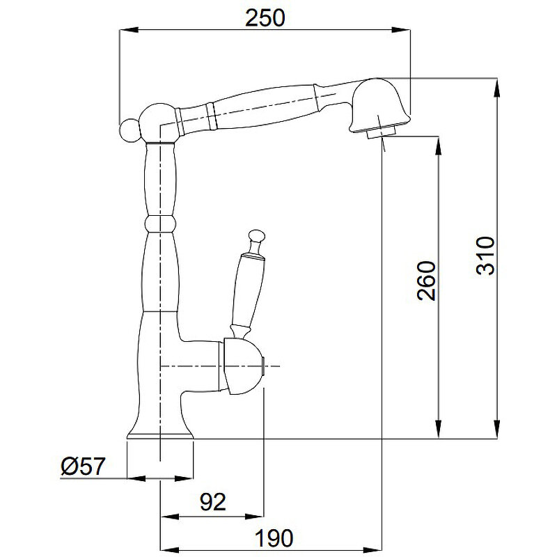 Migliore CUCINA OXFORD смеситель для кухни моноком., с выдвижной лейкой, ручка белая/бронза 18197