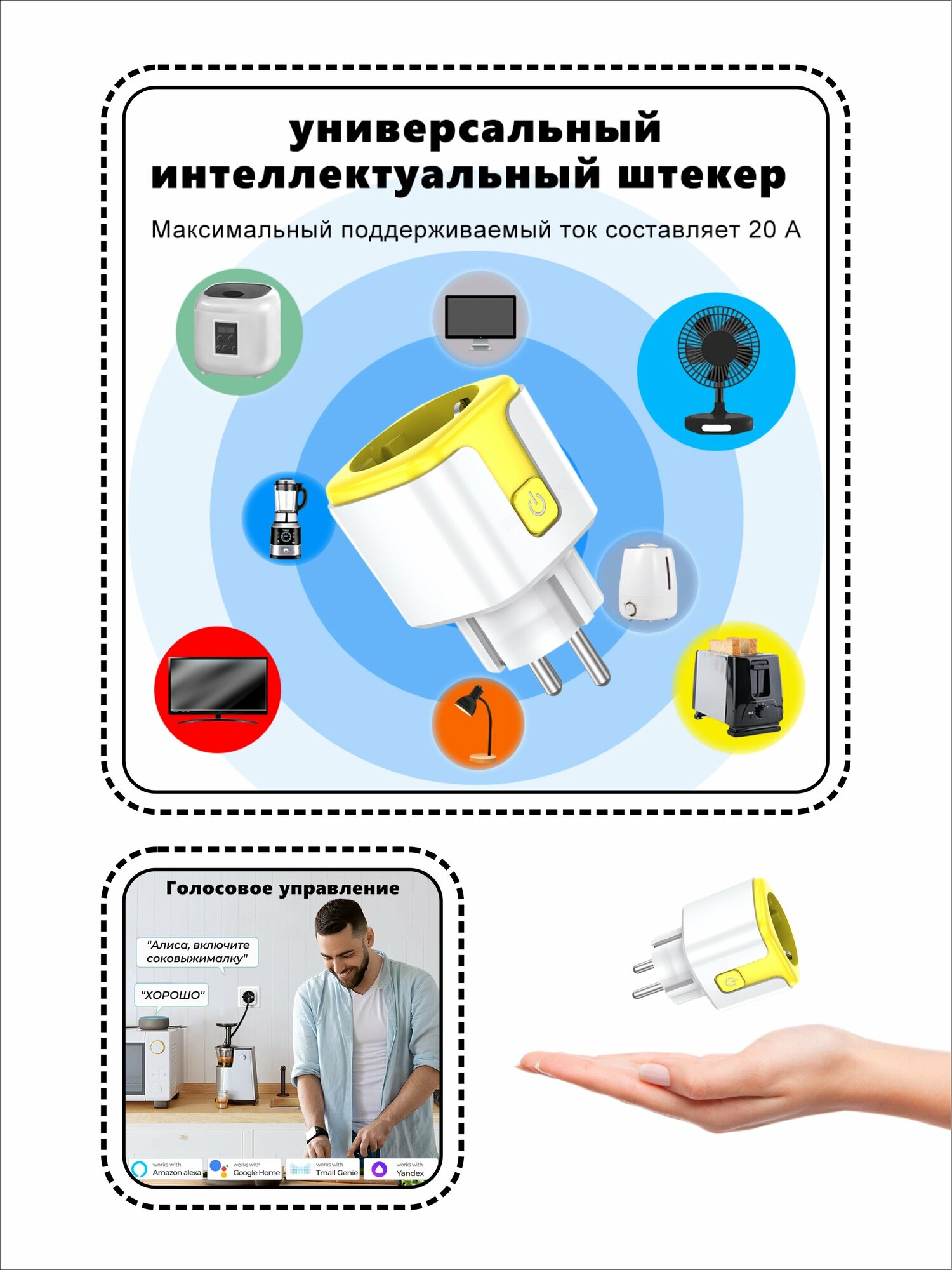 Умная беспроводная WiFi розетка 20А Yellow интересное: