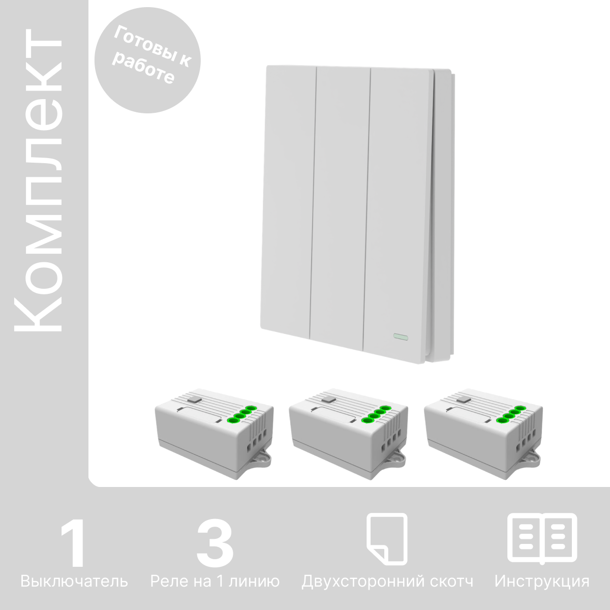 Умный беспроводной выключатель GRITT Evolution 3кл. серебристый комплект: 1 выкл. IP67, 3 реле 1000Вт 433+WiFi с управлением со смартфона EV221330SLWF