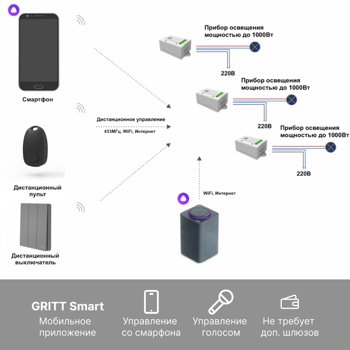| Протокол связи Умного дома | RF433 / Wi-Fi |