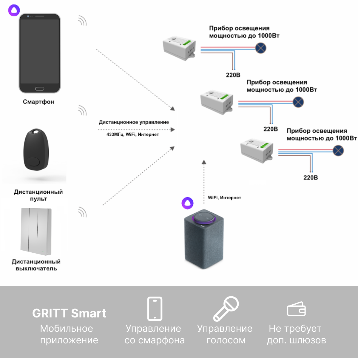 | Протокол связи Умного дома | RF433 / Wi-Fi |
