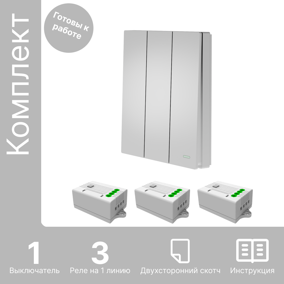 Купить Умный беспроводной выключатель GRITT Evolution 3кл. серебристый комплект: 1 выкл. IP67, 3 реле 1000Вт 433+WiFi с управлением со смартфона EV221330SLWF