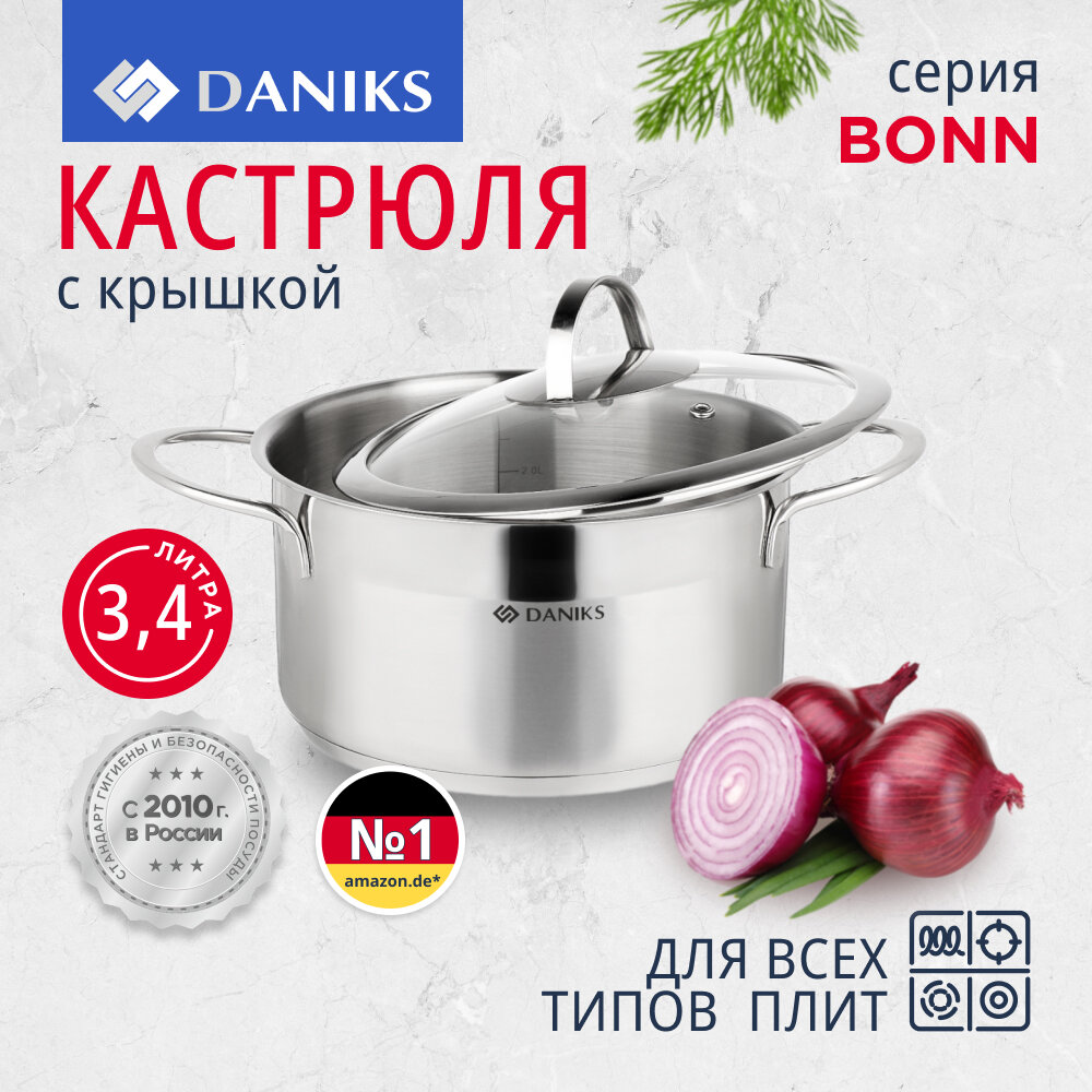 СохранитьКастрюля нерж, 3.4 л, с крыш, крышка стекло, Daniks, Бонн, GS-01319-20CA, индукц интересное: