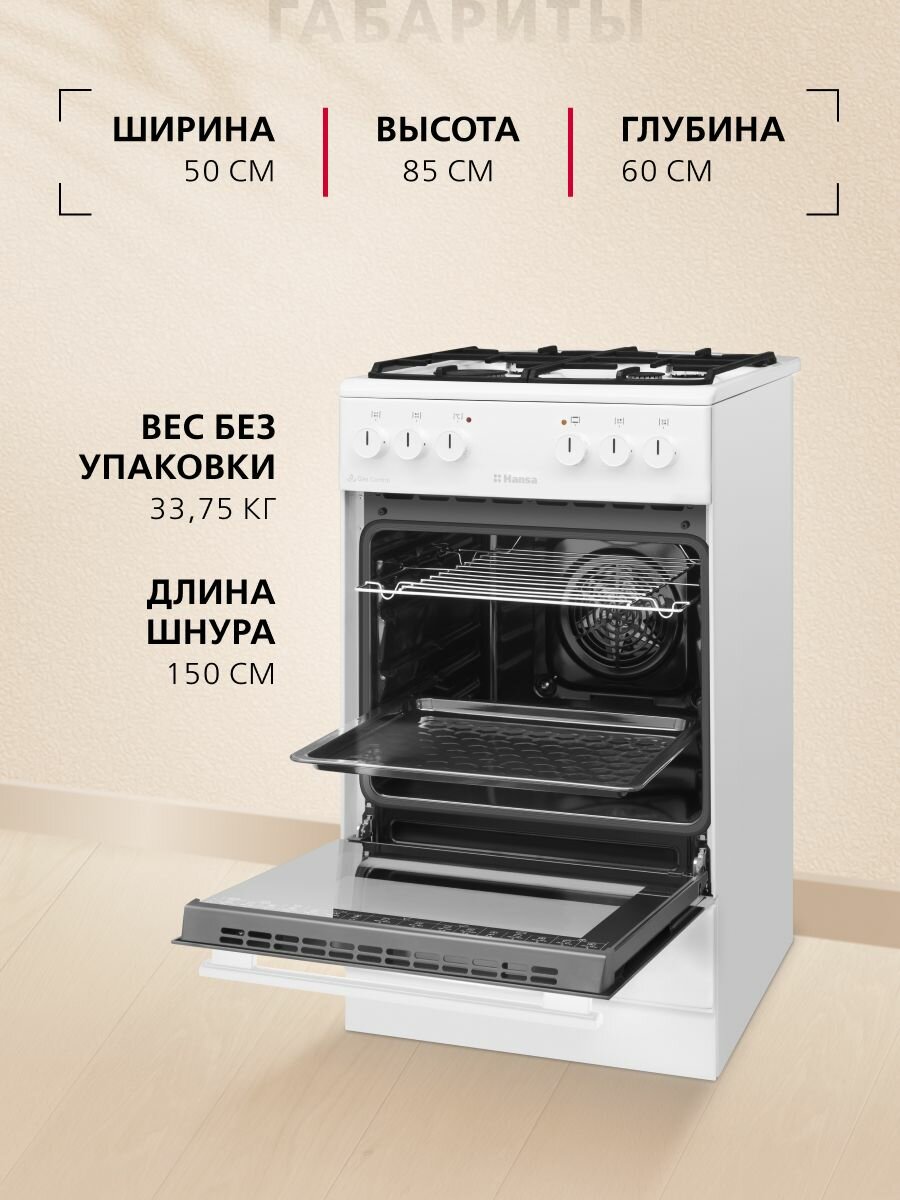 Комбинированная газовая плита Hansa FCMW58023 с электрической духовкой, с грилем и конвекцией, 8 режимов нагрева, газ-контроль, автоподжиг