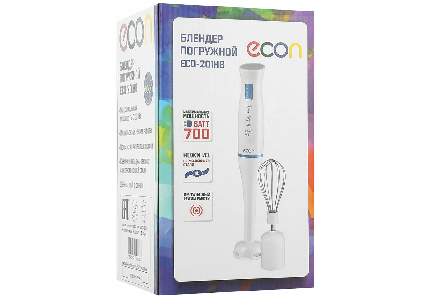 Блендер Econ Eco-201hb, погружной, 700Вт, 1 скорость, 2 шт, цвет белый-синий Econ 9160908 .