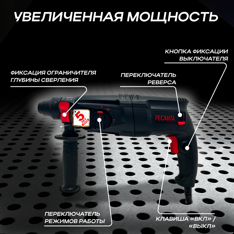 Перфоратор РЕСАНТА П-28-800К 75/3/1, 800 Вт