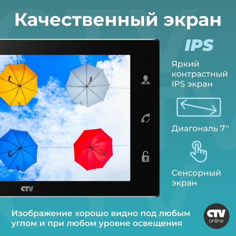 Купить CTV M4706AHD Black - монитор видеодомофона для квартиры, дома или офиса, аналоговый видеомонитор с сенсорным TFT дисплеем 7" (17 см) 1024x600px