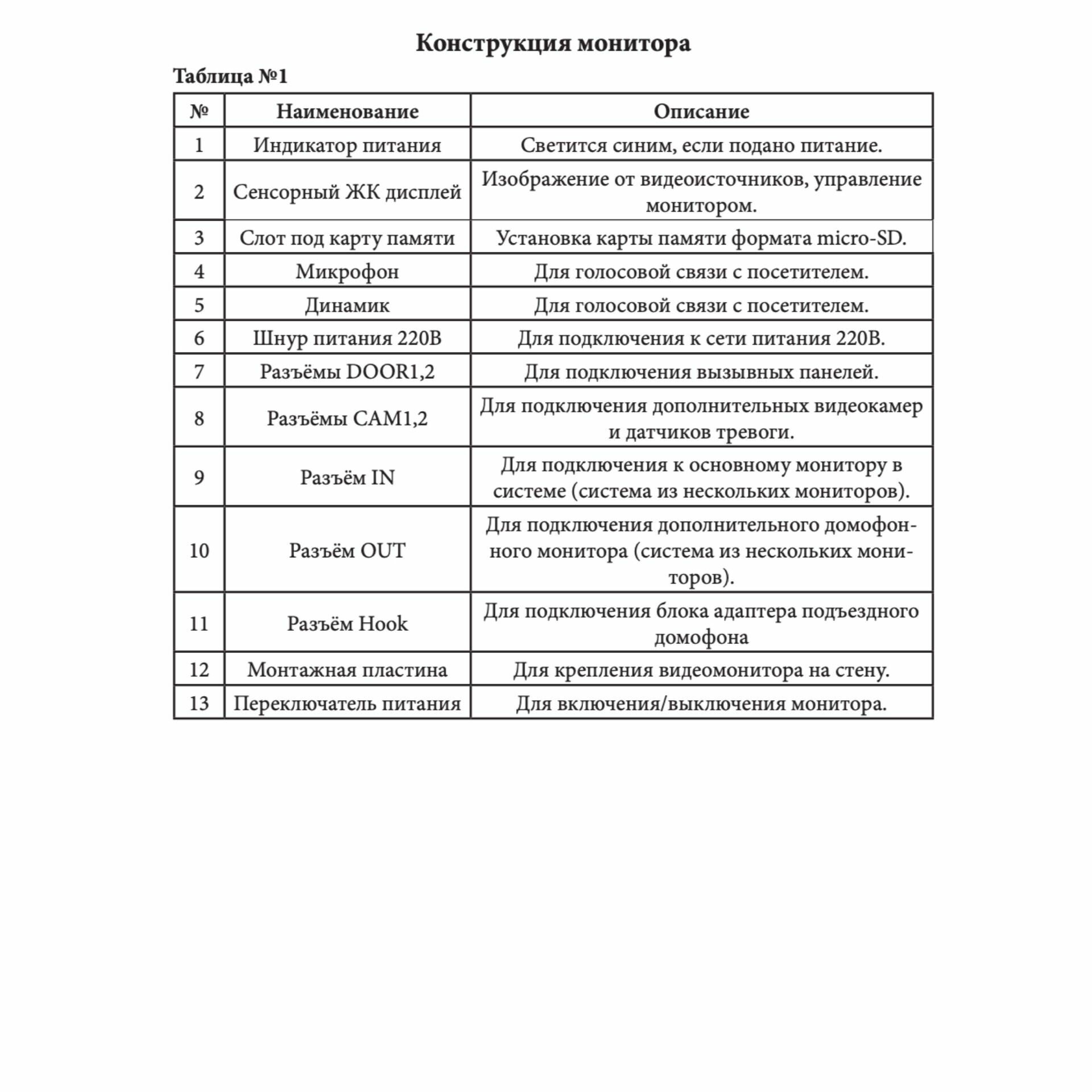 | Цвет панели (дверной станции) | черный |