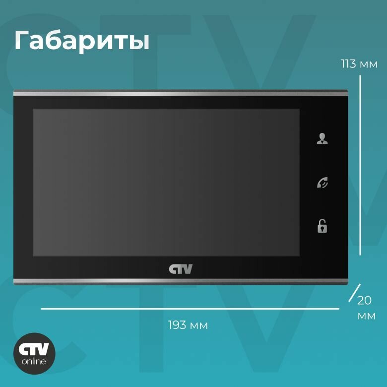 СохранитьCTV M4706AHD Black - монитор видеодомофона для квартиры, дома или офиса, аналоговый видеомонитор с сенсорным TFT дисплеем 7" (17 см) 1024x600px интересное:
