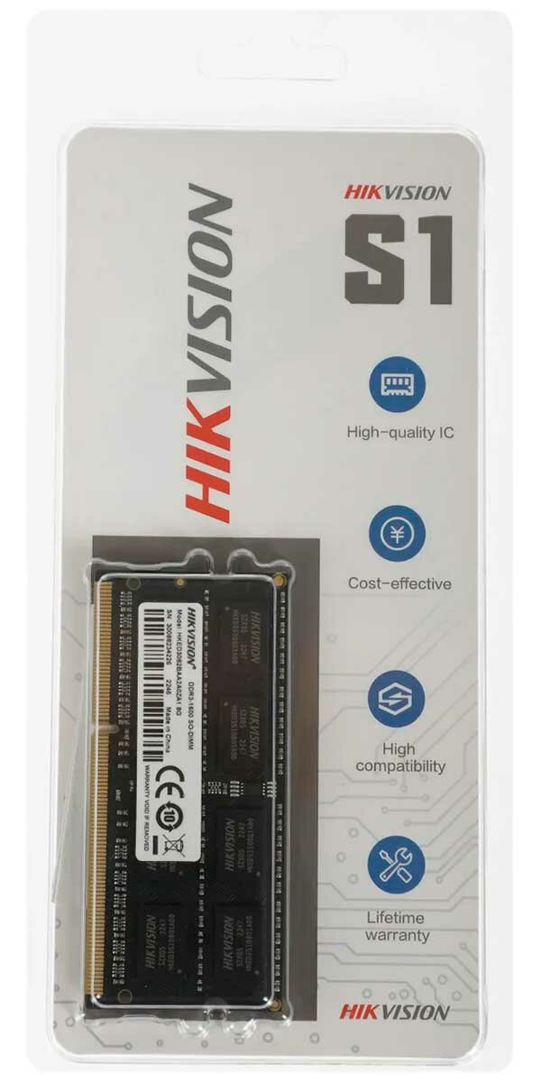 Оперативная память Hikvision HKED3082BAA2A0ZA1/8G DDR3L - 1x 8ГБ 1600МГц, для ноутбуков (SO-DIMM), Ret