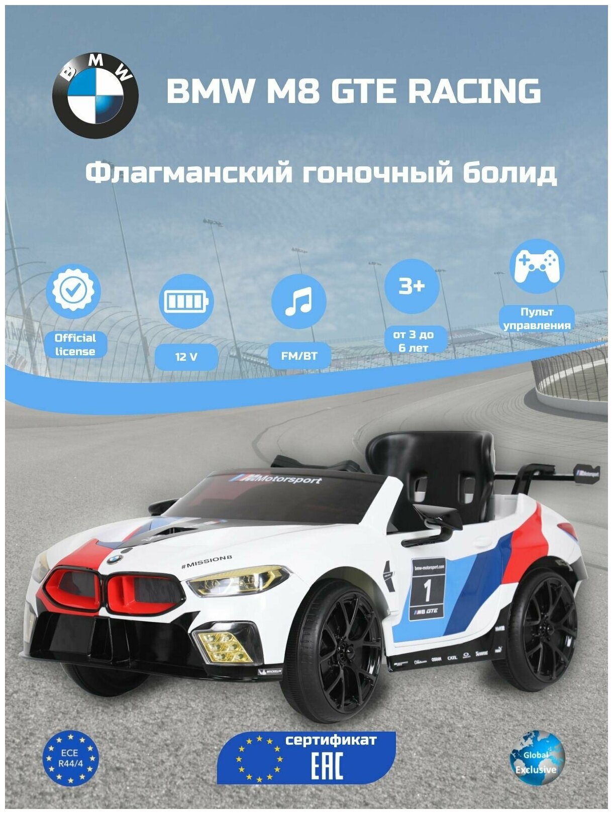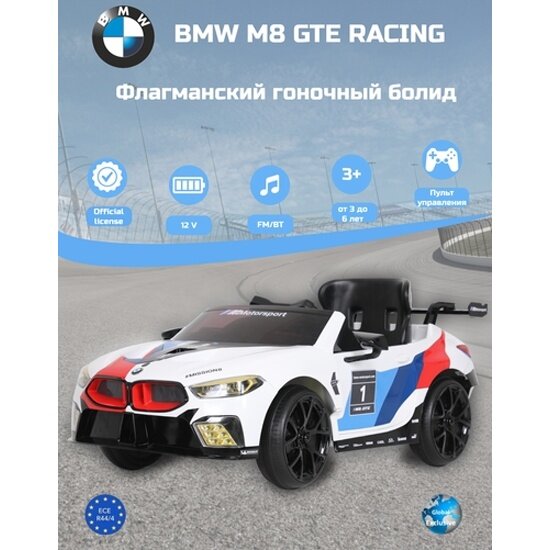 Детский электромобиль ROLLPLAY BMW M8 GTE RACING 12V c пультом управления
