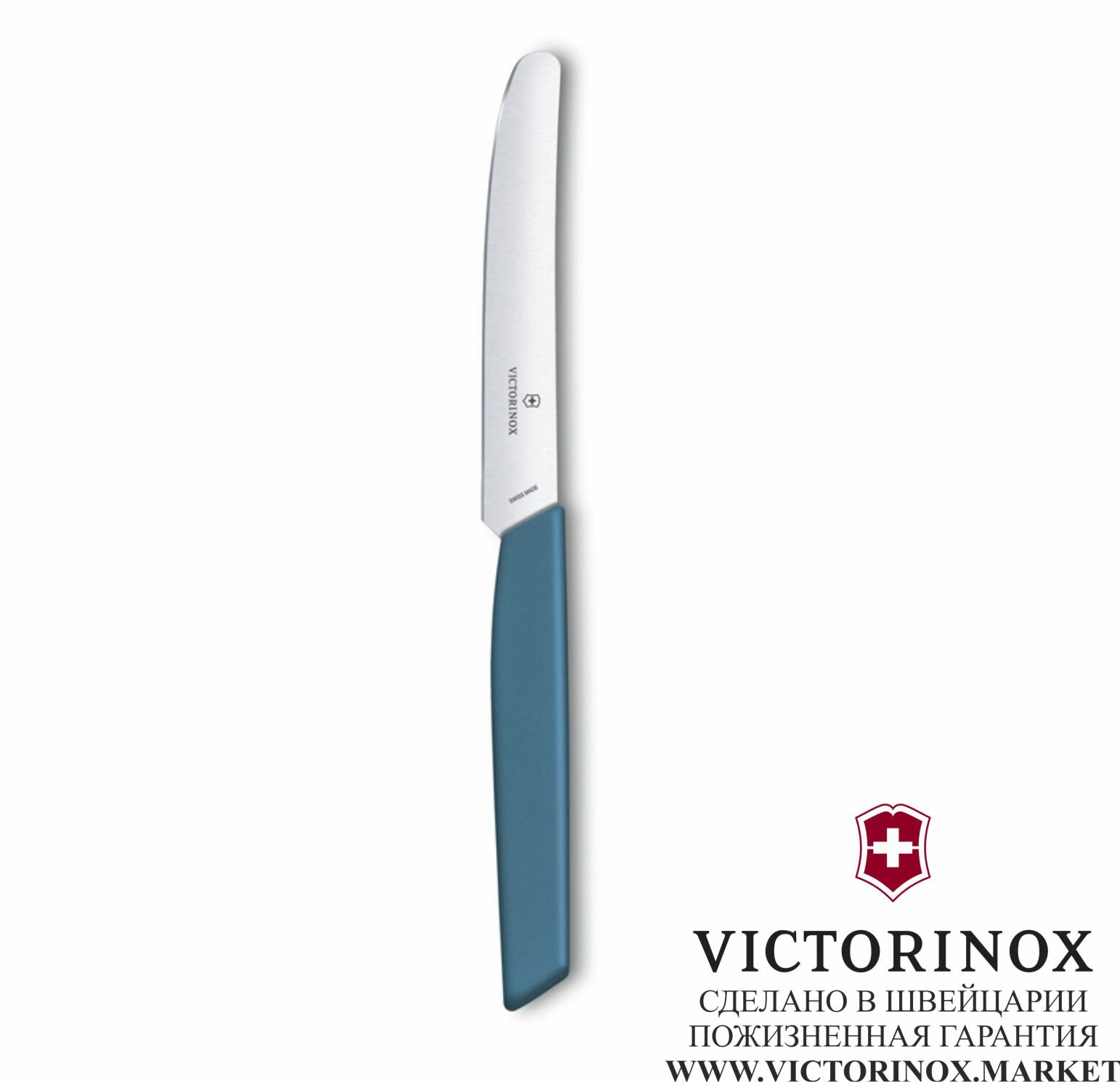 Нож кухонный Victorinox Swiss Modern (6.9006.11W2) стальной столовый для томатов лезвие 110мм серрейторная заточка синий