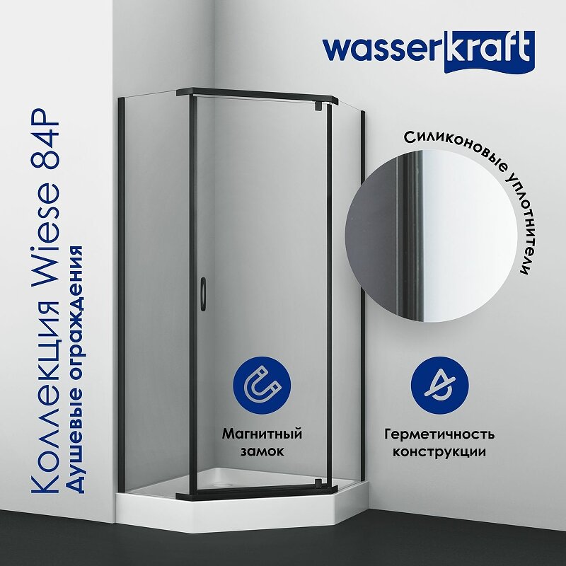 Душевой уголок WasserKRAFT Wiese 84P11 90х90 стекло прозрачное/профиль черный