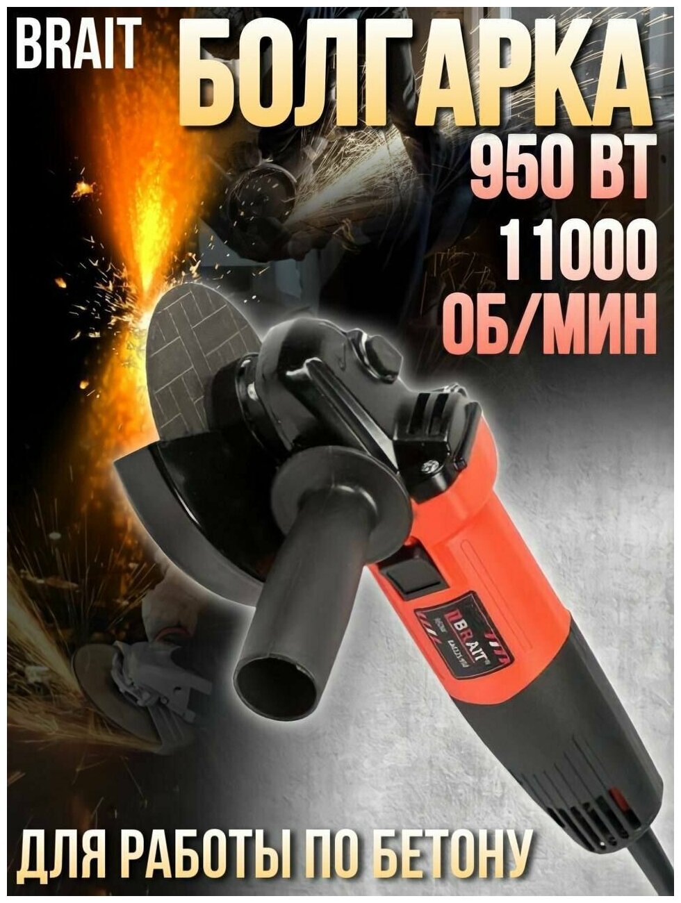Купить Углошлифовальная машина ( болгарка ) УШМ BRAIT 125/950 ( 950 Вт, 125 мм,11000 об/мин )