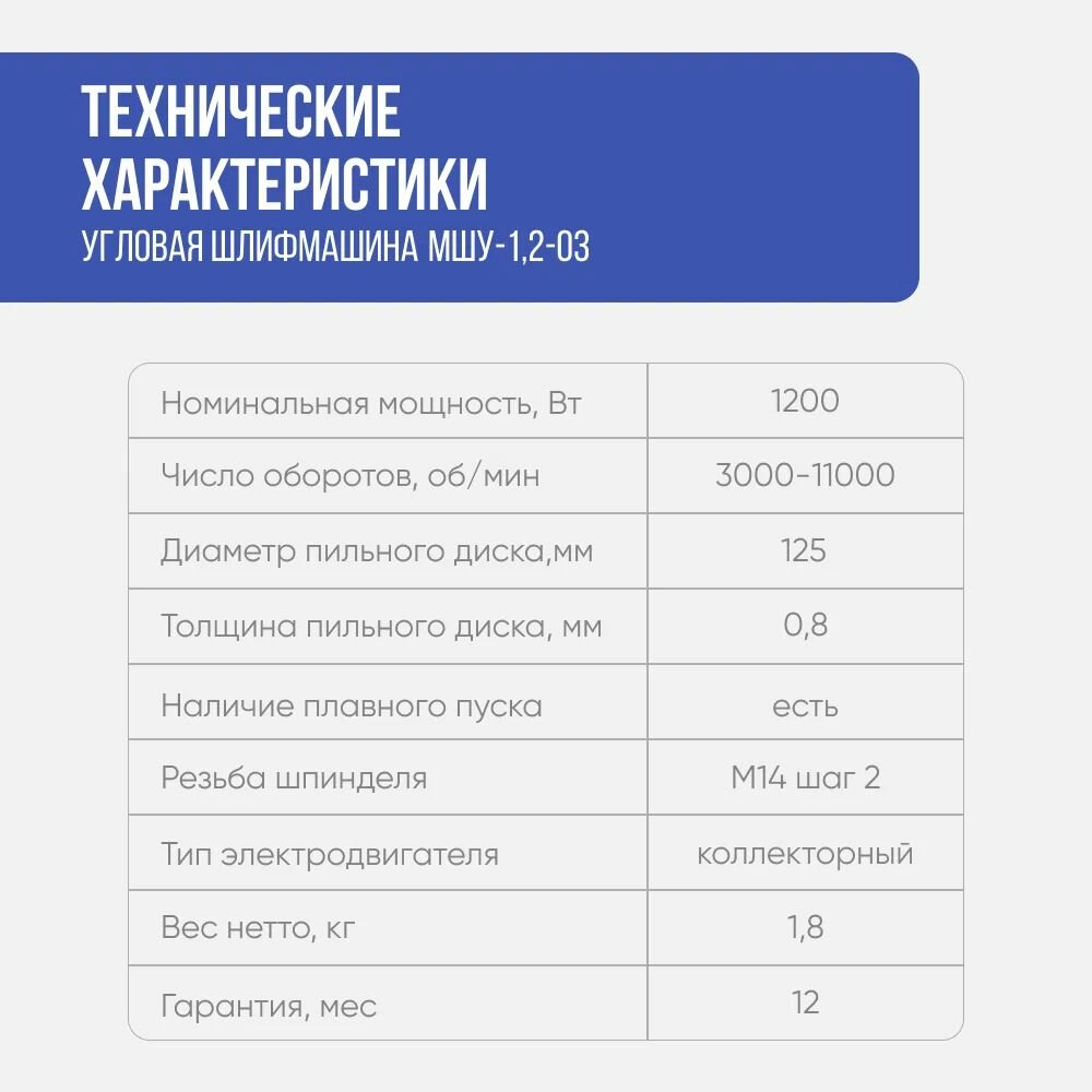 Угловая шлифмашина болгарка МШУ-1300-01 (бесщётощная) 1300 Вт.