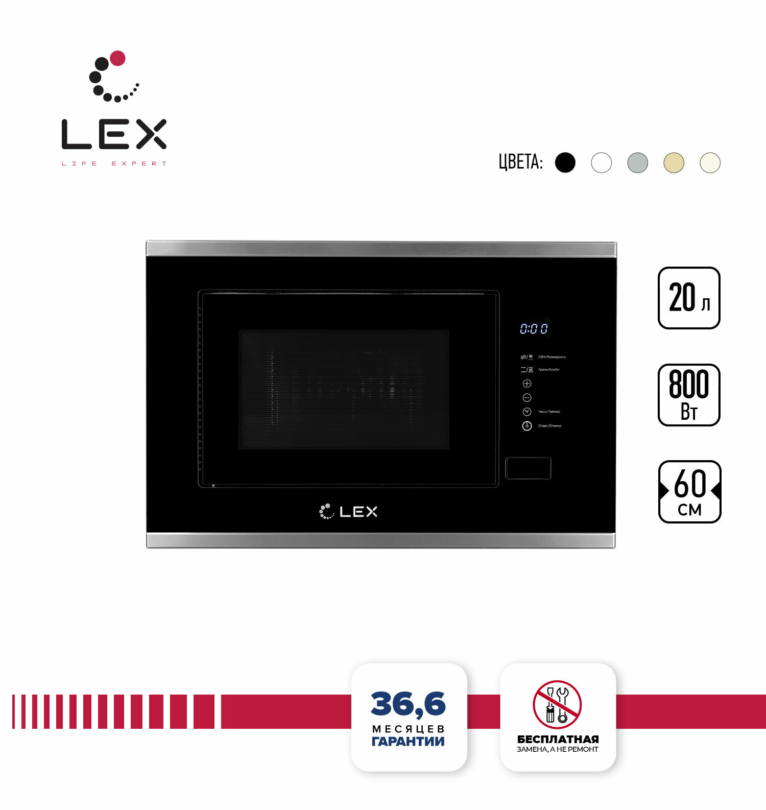 СохранитьВстраиваемая микроволновая печь СВЧ LEX BIMO 20.01 INOX интересное: