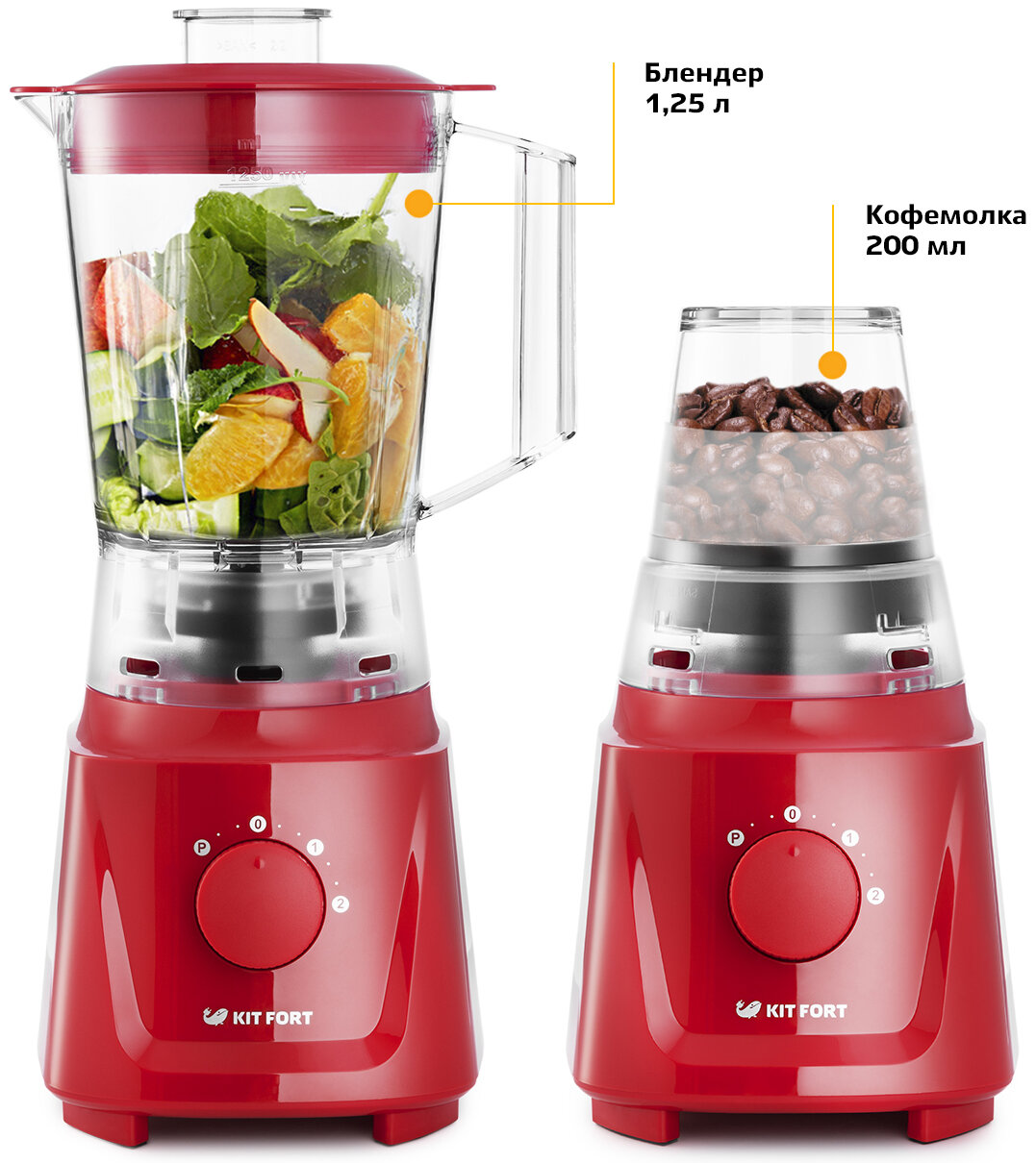 Блендер стационарный 2 в 1 Kitfort КТ-1356-2, красный