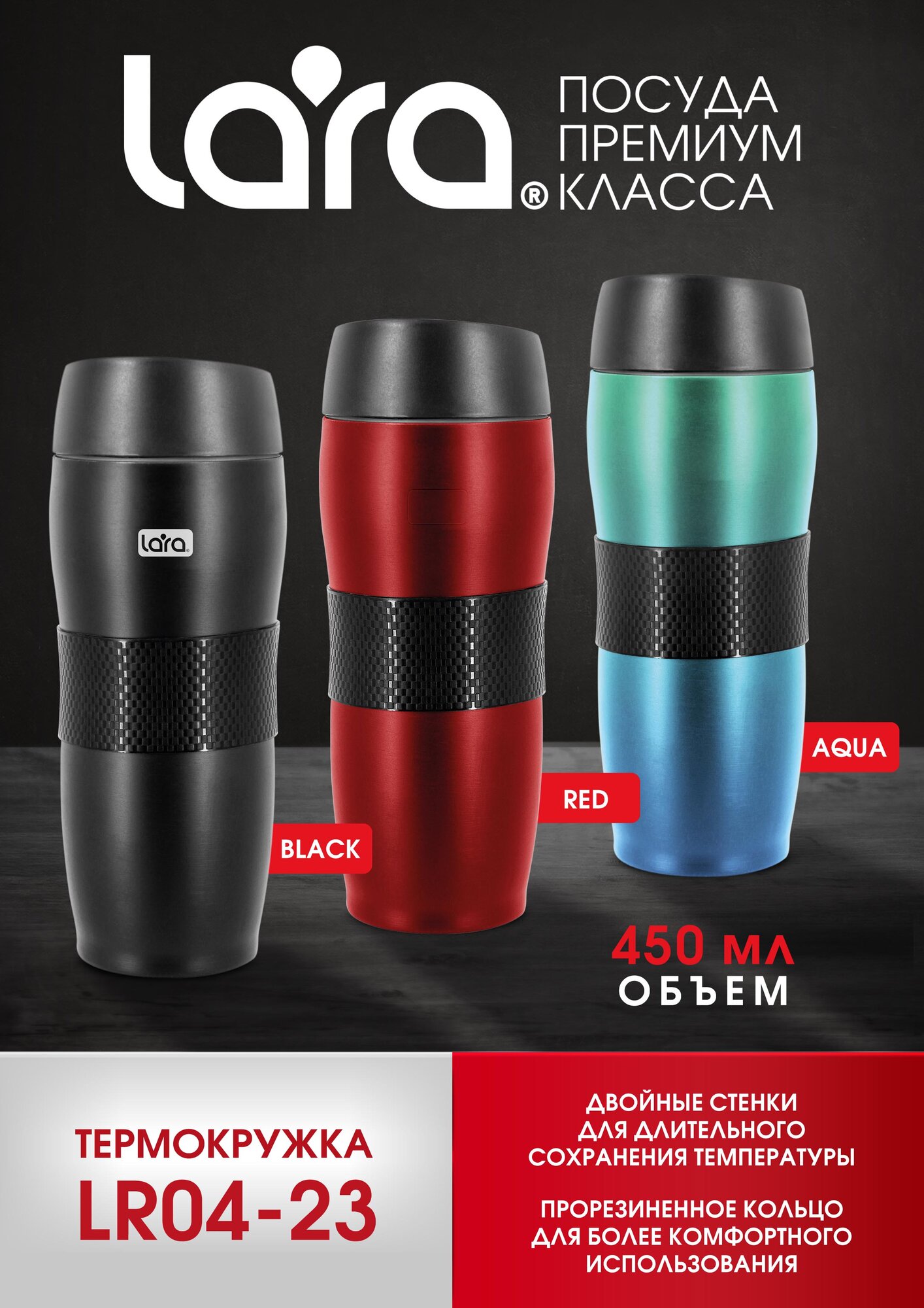СохранитьТермокружка LARA LR04-23 Red/ 0.45 л, двойные стенки интересное: