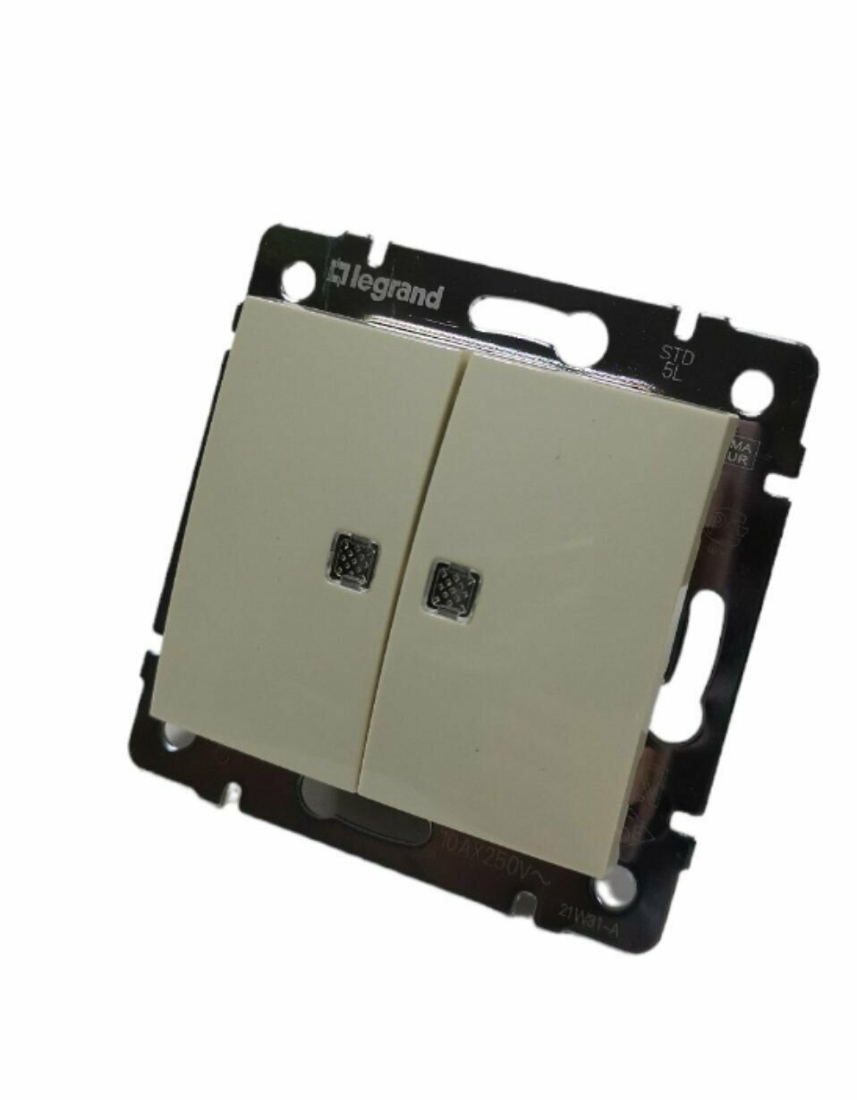 Выключатель Двухклавишный С подсветкой Legrand Valena цвет Слоновая Кость 2шт