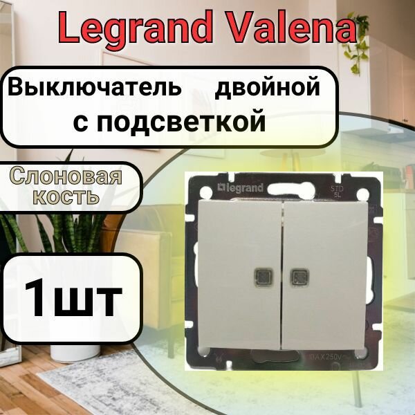 Купить Выключатель двухклавишный Legrand Valena с подсветкой слоновая кость