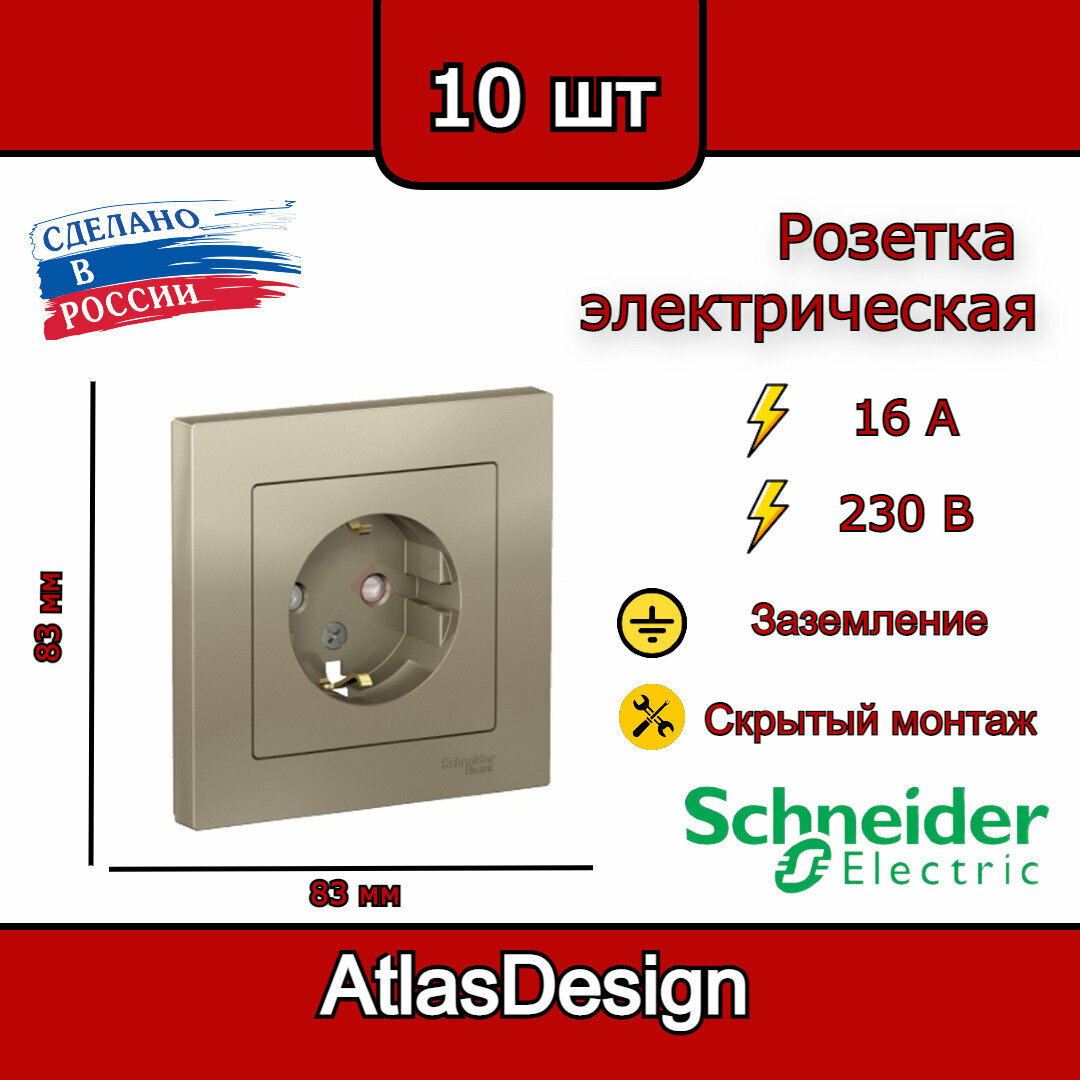 СохранитьРозетка с заземлением, со шторками, в сборе, шампань Schneider Electric AtlasDesign (комплект 10шт) интересное: