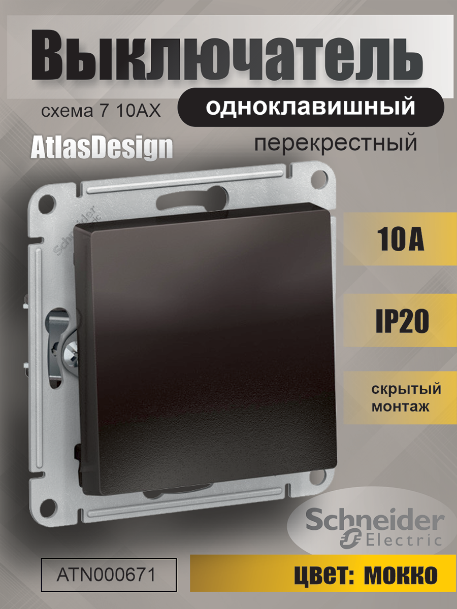 Механизм переключателя перекрестного 1-кл. СП AtlasDesign 10А IP20 (сх. 7) 10AX мокко ATN000671 Schneider Electric (2шт.)