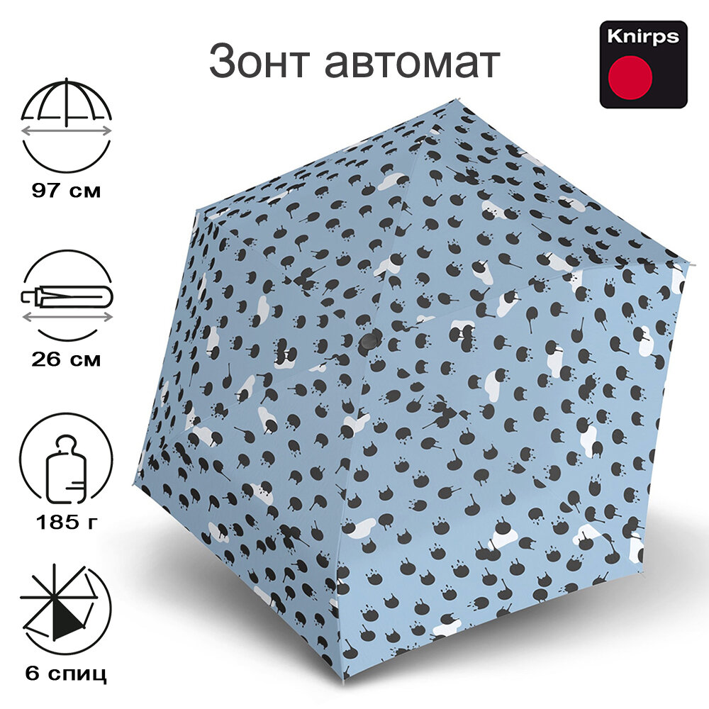 Ультралегкий зонт автомат женский Knirps, 6 спиц, антиветер