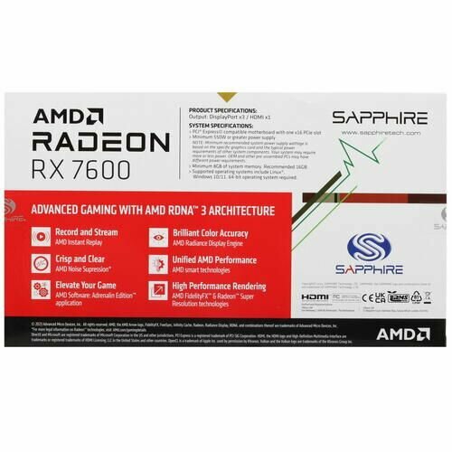 Купить Видеокарта Sapphire PULSE RX 7600 GAMING 8ГБ, RET (11324-01-20g)