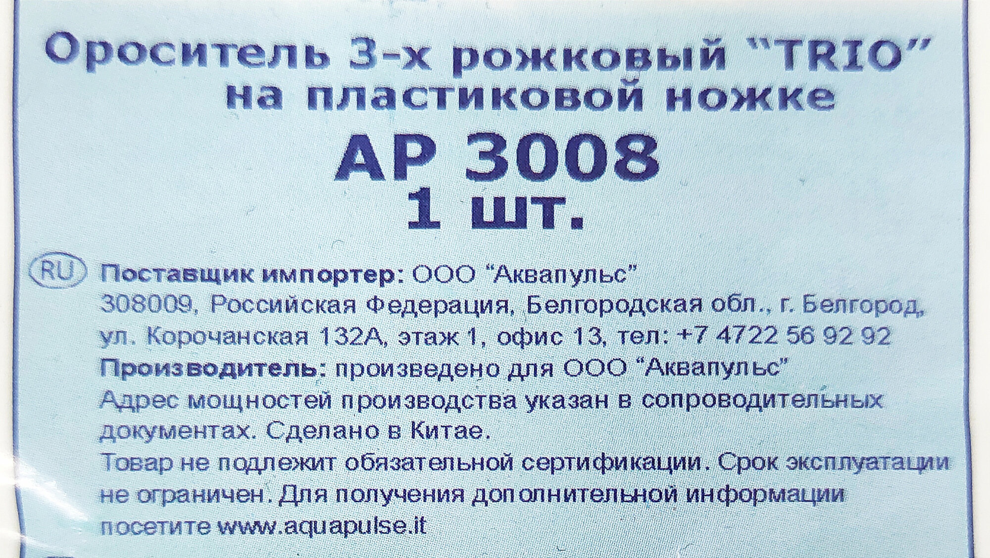 Ороситель 3-х рожковый на ножке aquapulse standart trio ap 3008 пластик