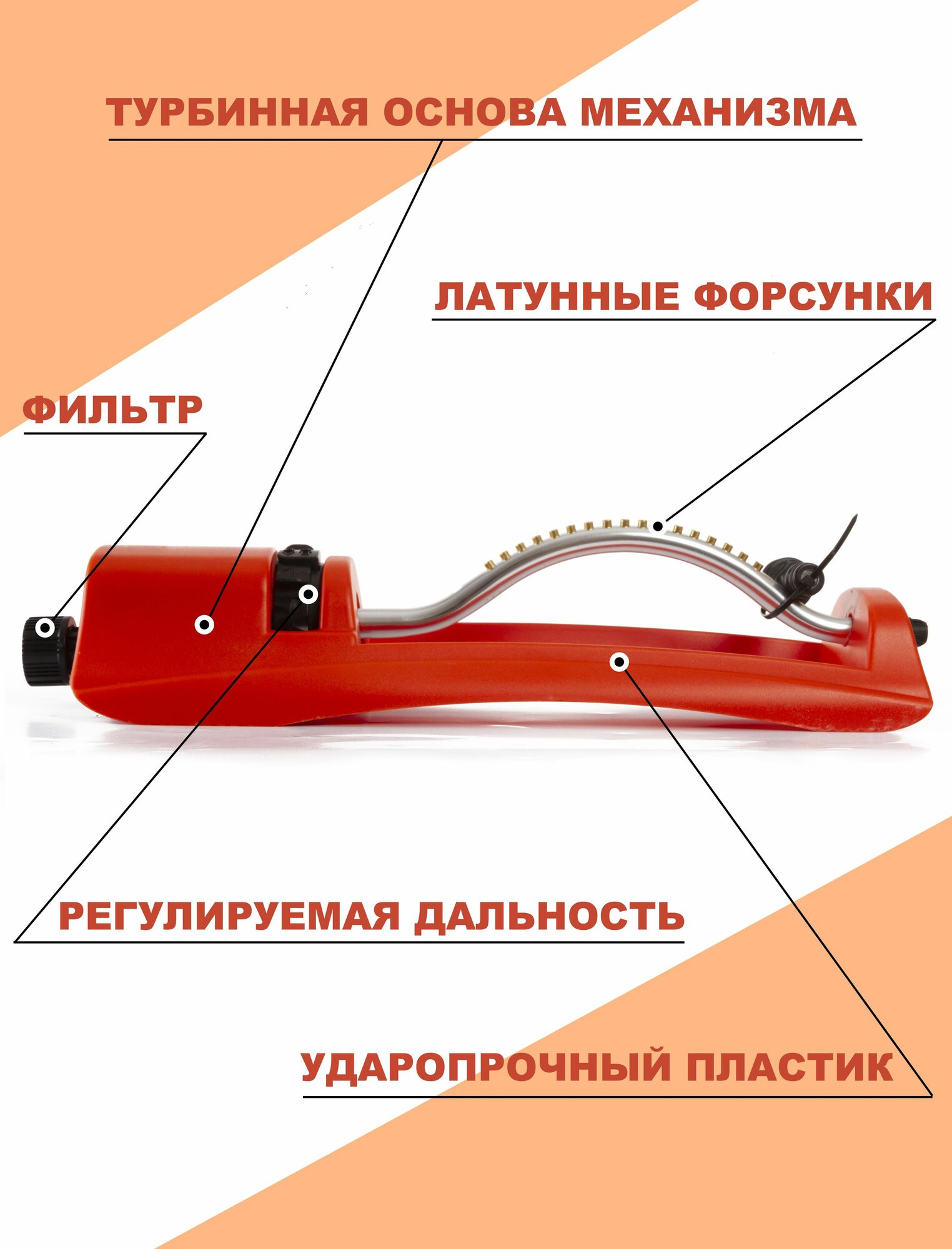 Дождеватель для полива круговой, 28 м2: предназначен для автоматического орошения; в процессе работы вода проходит через специальные сопла