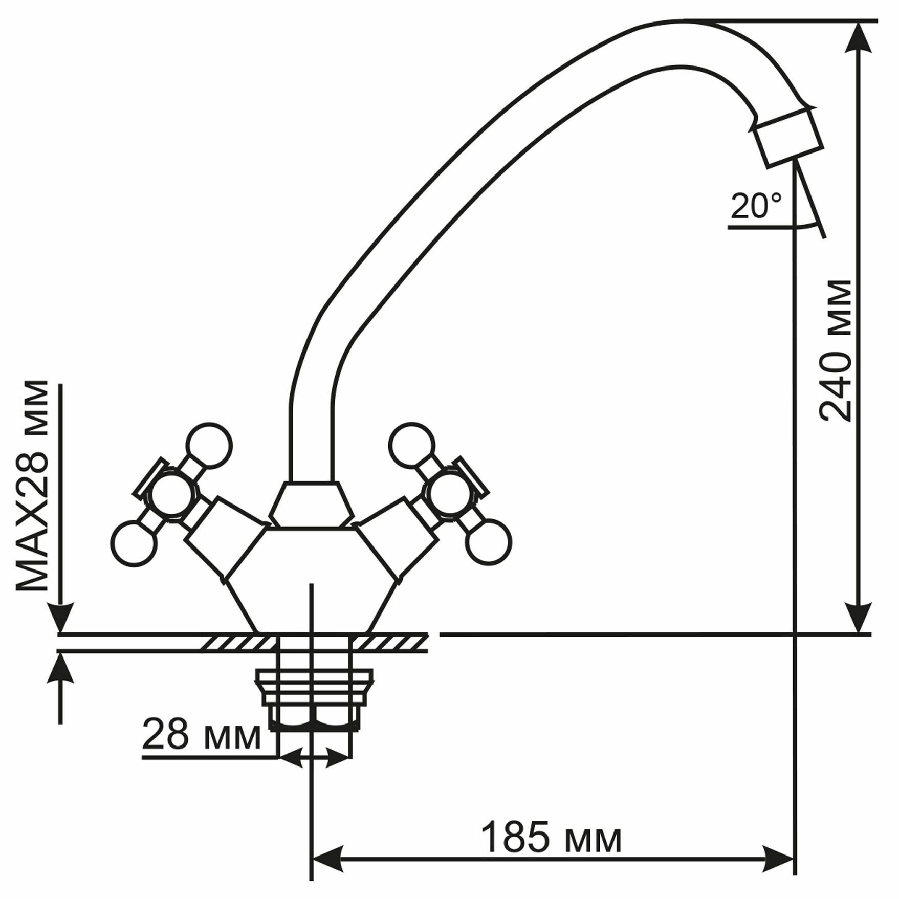| Длина излива | 185 мм |
