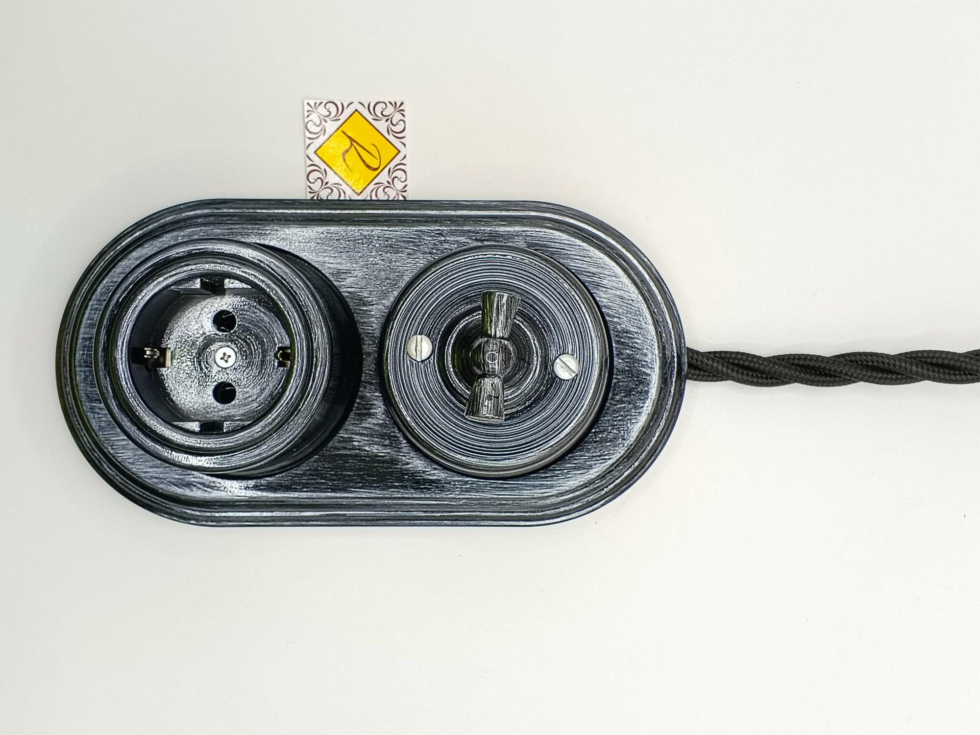 Розетка двойная ретро керамическая Арбат с заземлением черная, Interior Electric SCIE/W-03-2