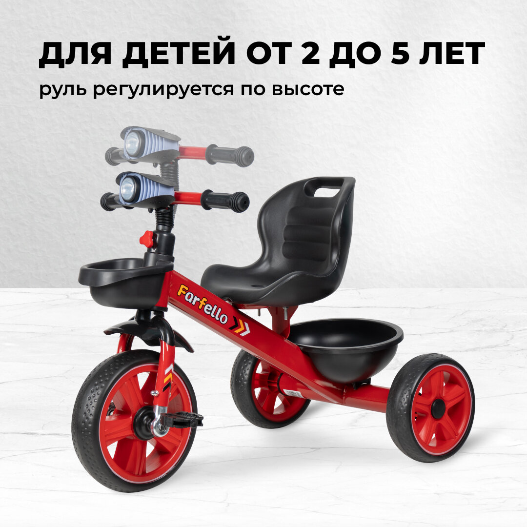 Трехколесный велосипед для детей Farfello 207 / корзина для игрушек / свет и музыка / цвет красный