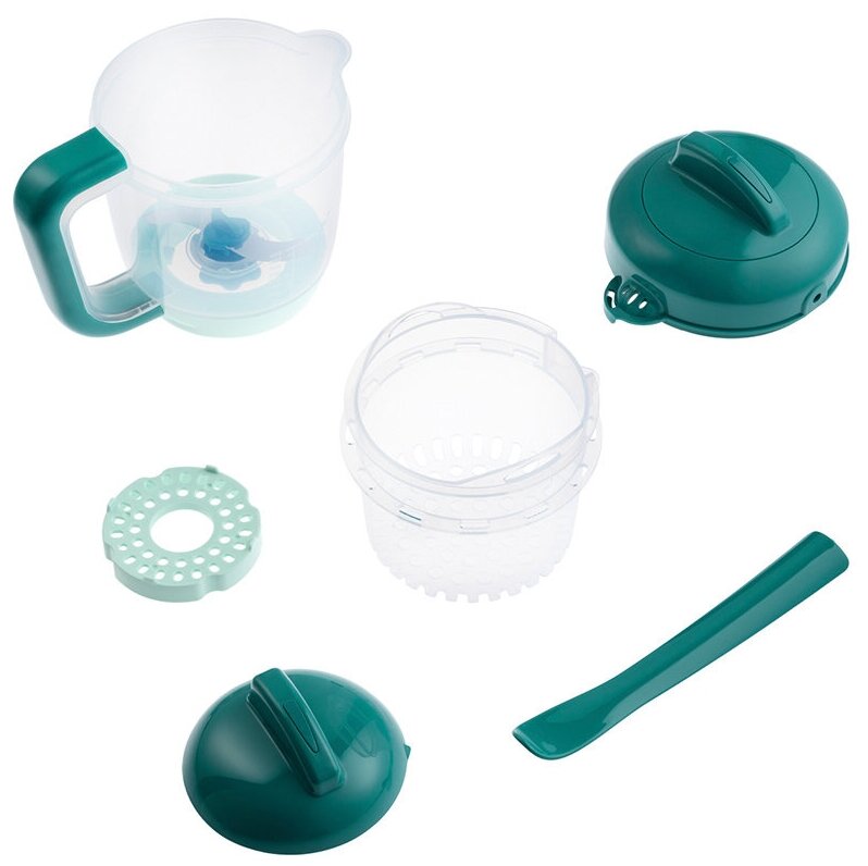 всего 3 кнопки, время приготовления регулируется количеством налитой в резервуар воды. Небольшой объем: возможность готовить очень маленькие порции маленькому ребенку, который только пробует прикорм. Скорость и качество измельчения: отлично измельчает даже небольшое количество продукта. Удобная ложка: ложкой, входящей в комплект, очень удобно выгребать продукт из-под ножей в резервуаре. Легко моется: небольшое количество деталей, которые очень легко мыть. Можно регулировать степень измельчения и постепенно сгущать пищу малышу! |