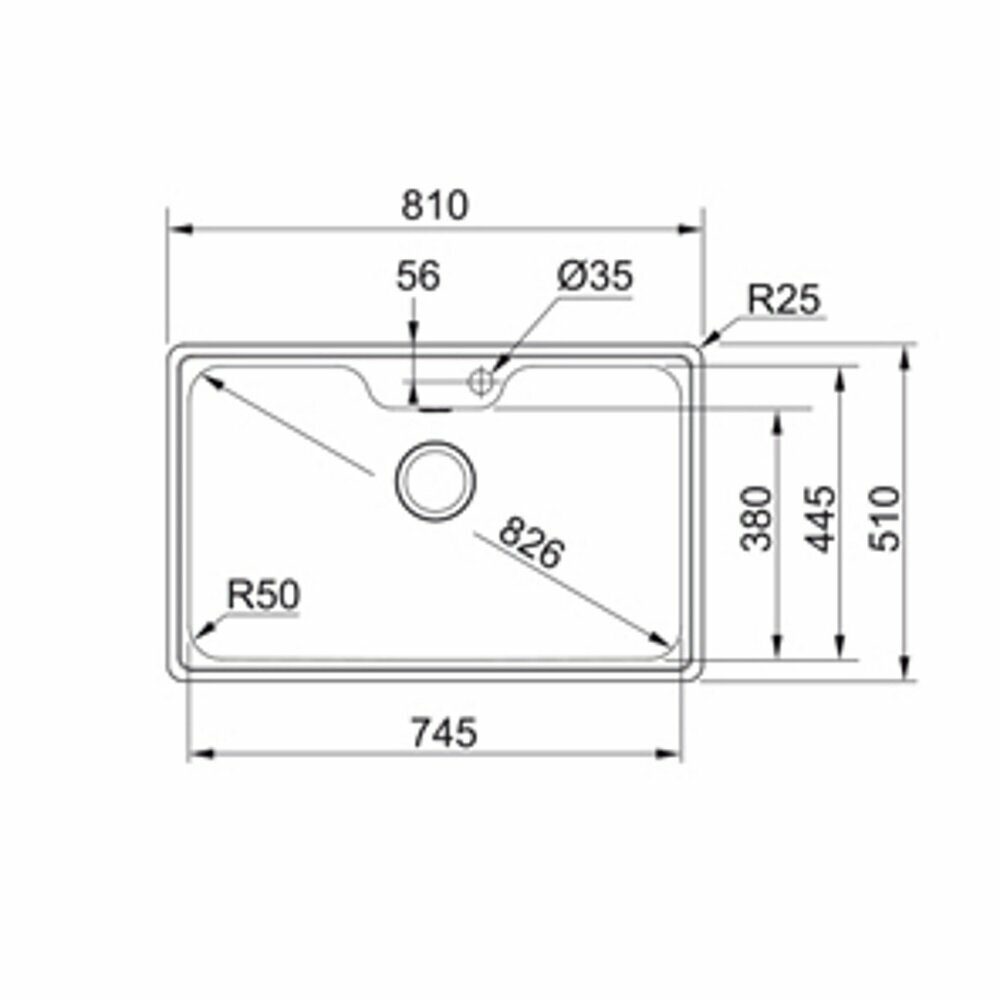 Franke Мойка Franke 101.0689.879/ Best, Серия BELL, BCX 610-81 TL, 810 x 510 mm, чаша745 x 445/380 x 200 mm, монтаж сверху, скрытый перелив, крепления FastFix