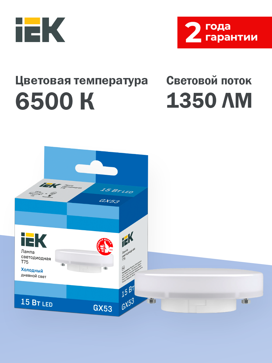 IEK Лампа светодиодная LED Таблетка, GX53, T75, 15 Вт, 6500 K, холодный свет