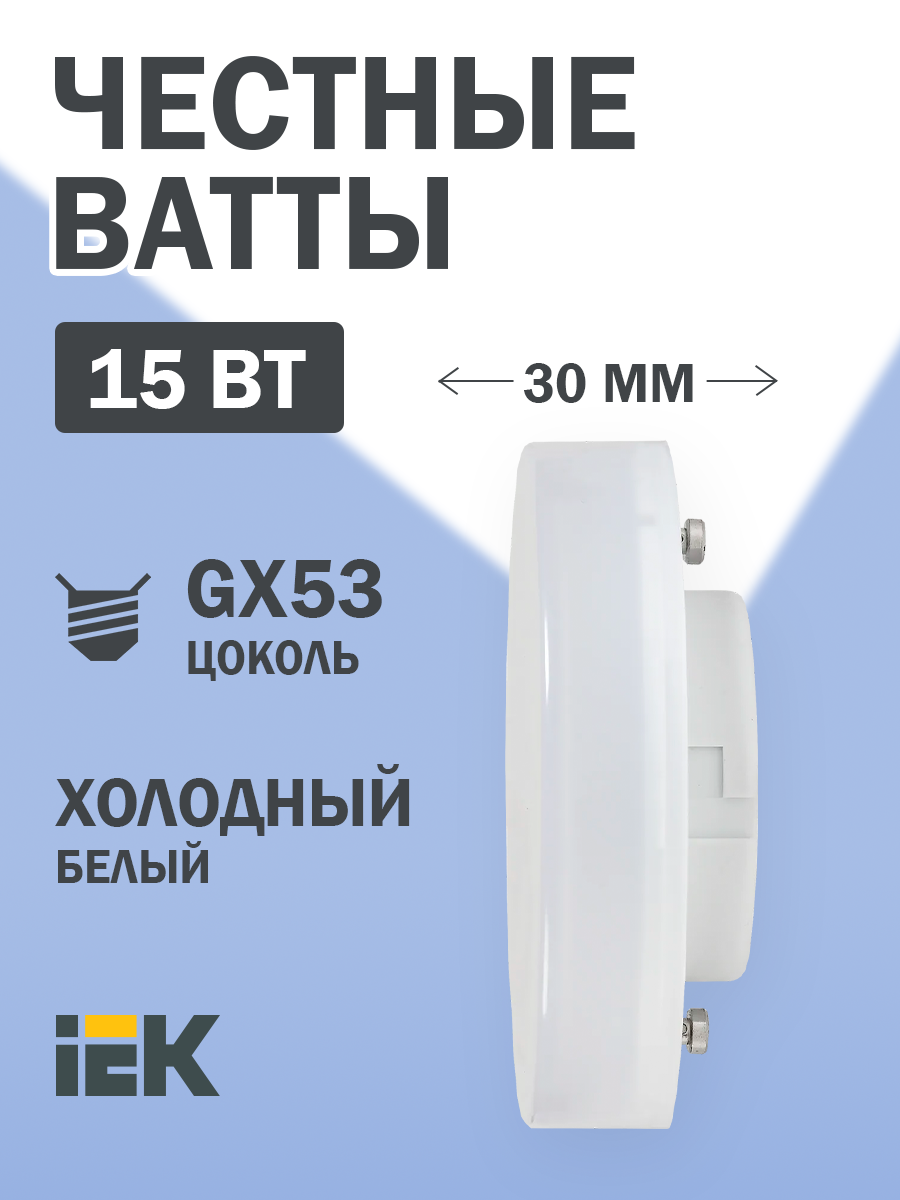 Лампа светодиод 15Вт таблетка GX53 6500К 1350Лм IEK интересное: