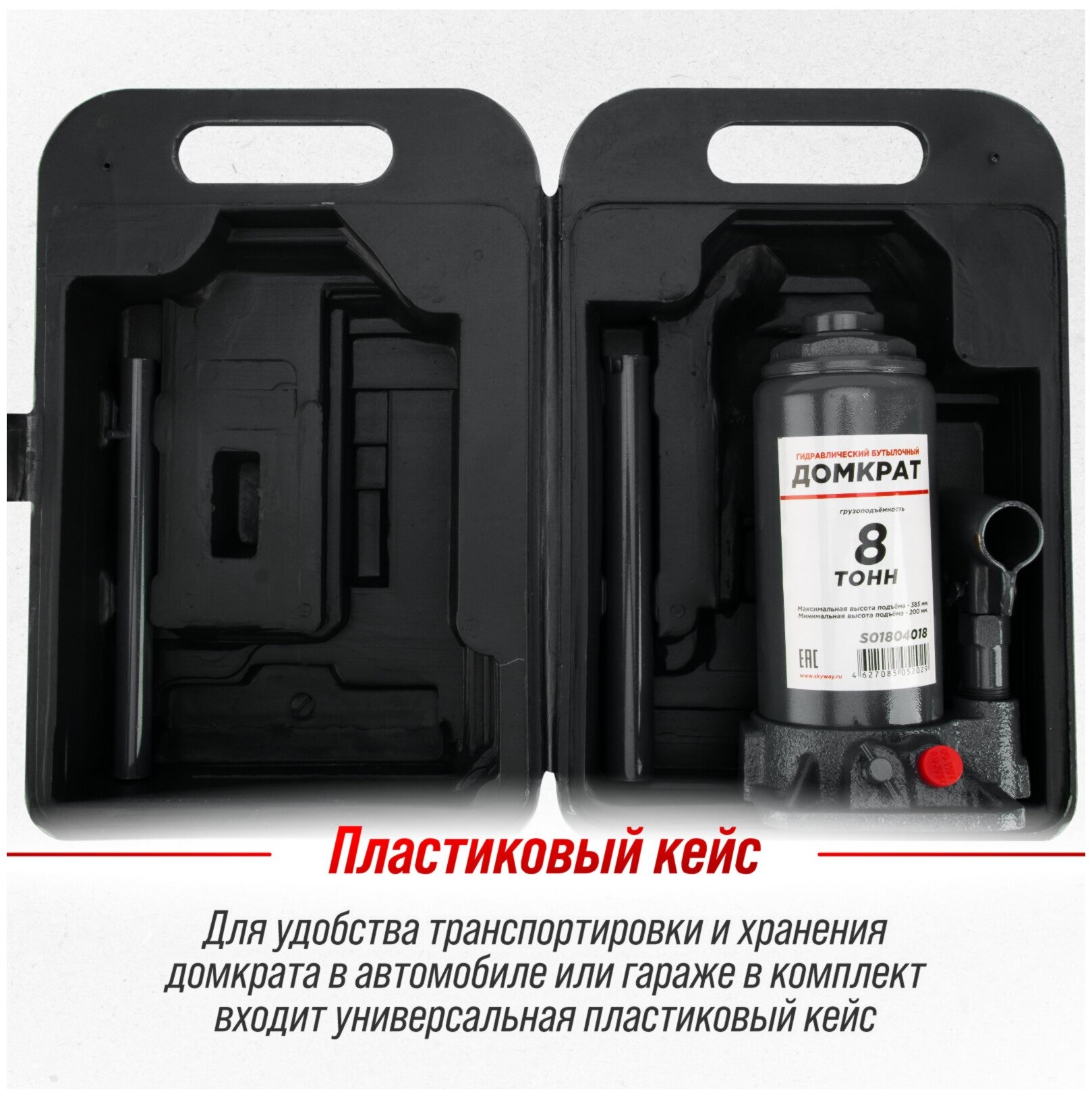 SKYWAY S01804018 Домкрат гидравлический бутылочный с клапаном в кейсе 8т h 200-385мм; SKYWAY интересное:
