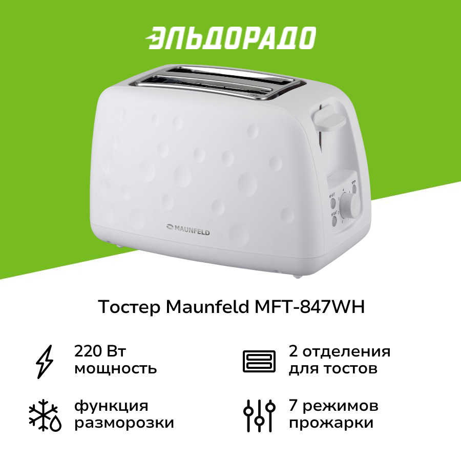 Ниже Вы можете прочитать отзывы на Тостер MAUNFELD MFT-847WH, ознакомится с подробными характеристиками, посмотреть интересные обзоры и фотографии на Тостер MAUNFELD MFT-847WH.