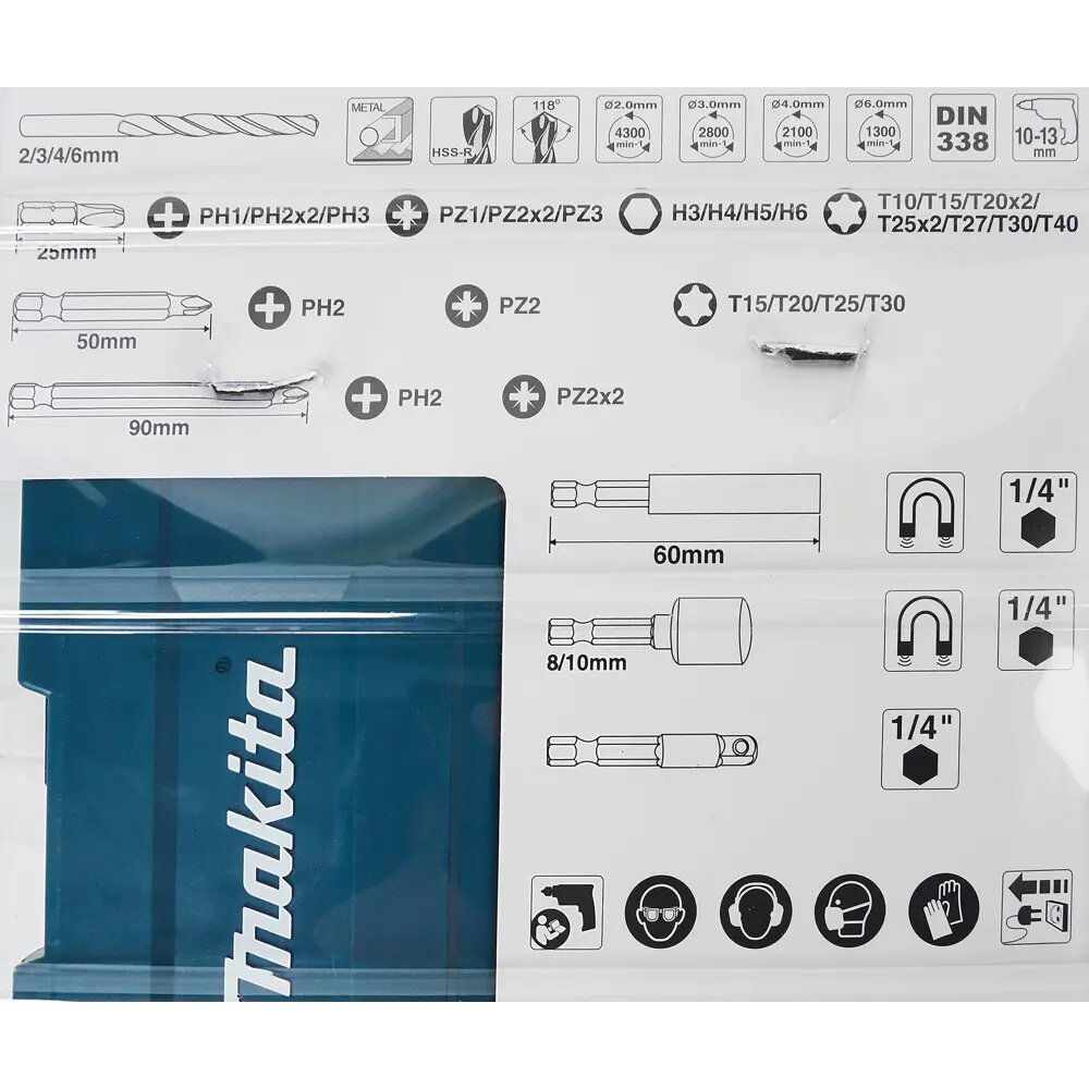Набор бит и насадок Makita B-54106, 38 предм., голубой, 1 уп.
