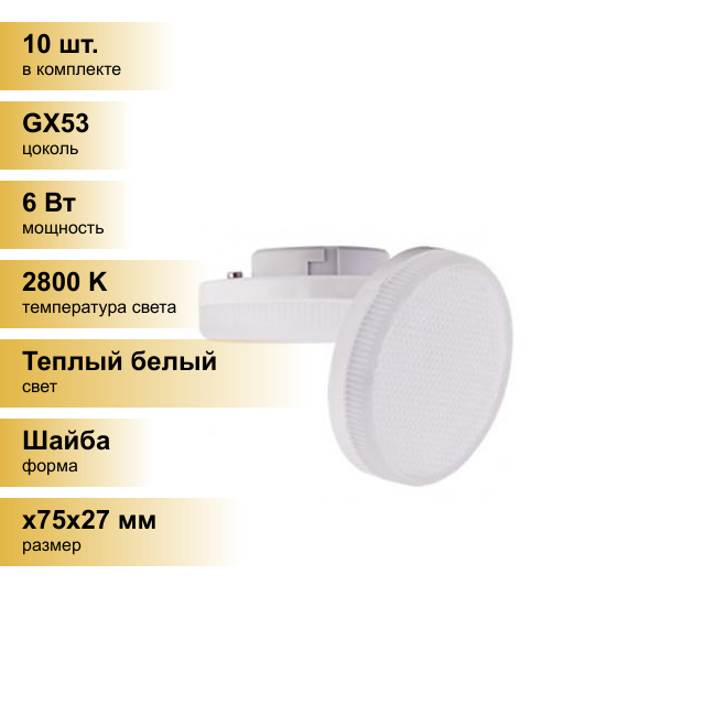 Купить (10 шт.) Светодиодная лампочка Ecola GX53 св/д 6W 2800K 2K 27x75 матов. Premium T5UW60ELC Теплый белый. Цоколь GX53