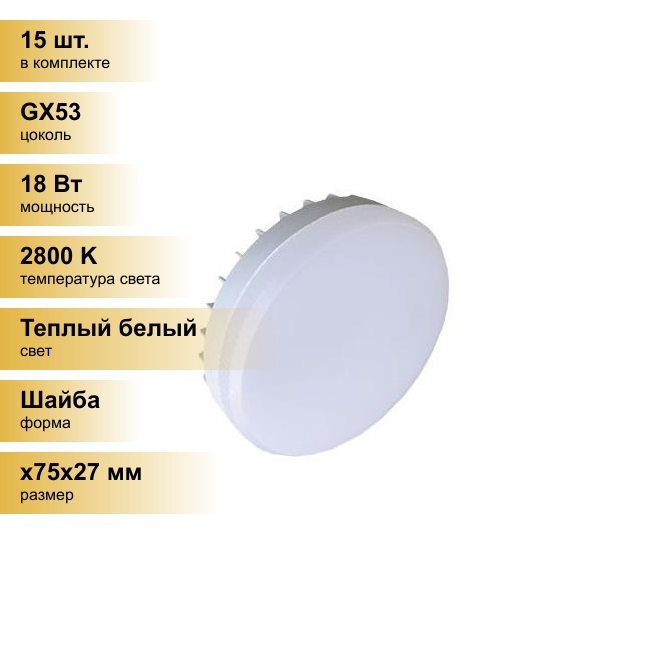 Купить (15 шт.) Светодиодная лампочка Ecola GX53 св/д 18W 2800K 2K 27x75 матов. Premium T5UW18ELC. Теплый белый. Цоколь GX53