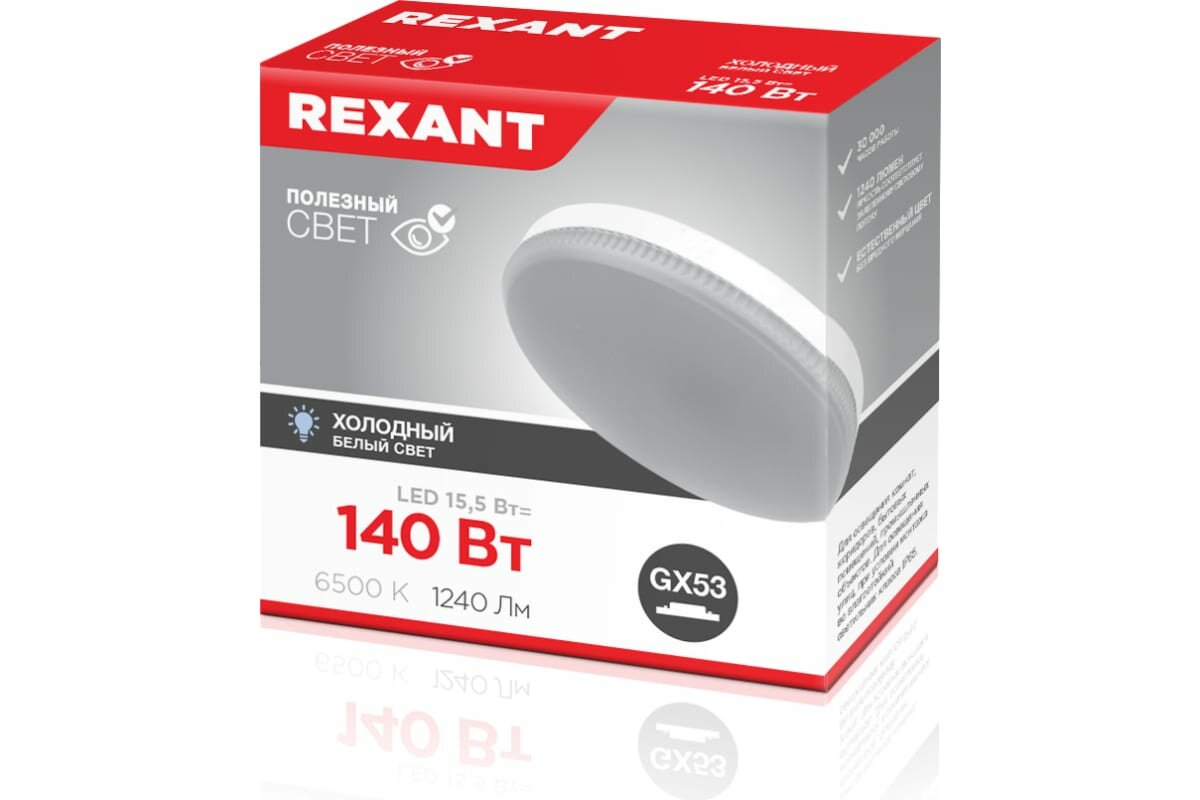 Ниже Вы можете прочитать отзывы на Лампа светодиодная Рефлектор GX53 15,5 Вт GX53 1240 Лм 6500 K холодный свет REXANT REXANT 604213, ознакомится с подробными характеристиками, посмотреть интересные обзоры и фотографии на Лампа светодиодная Рефлектор GX53 15,5 Вт GX53 1240 Лм 6500 K холодный свет REXANT REXANT 604213.
