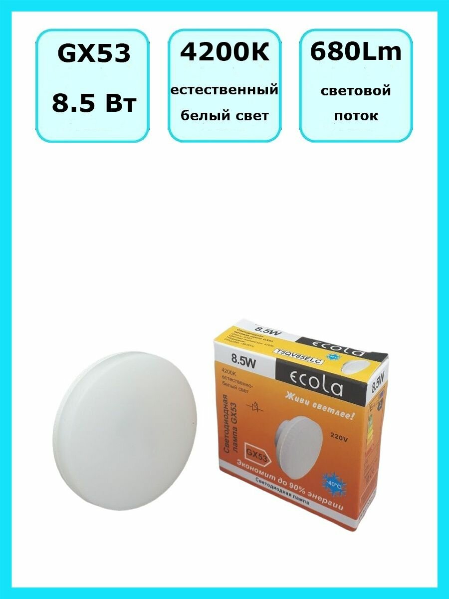 Лампа Ecola GX53 Св/д 8.5W 8W 4200K T5QV85ELC