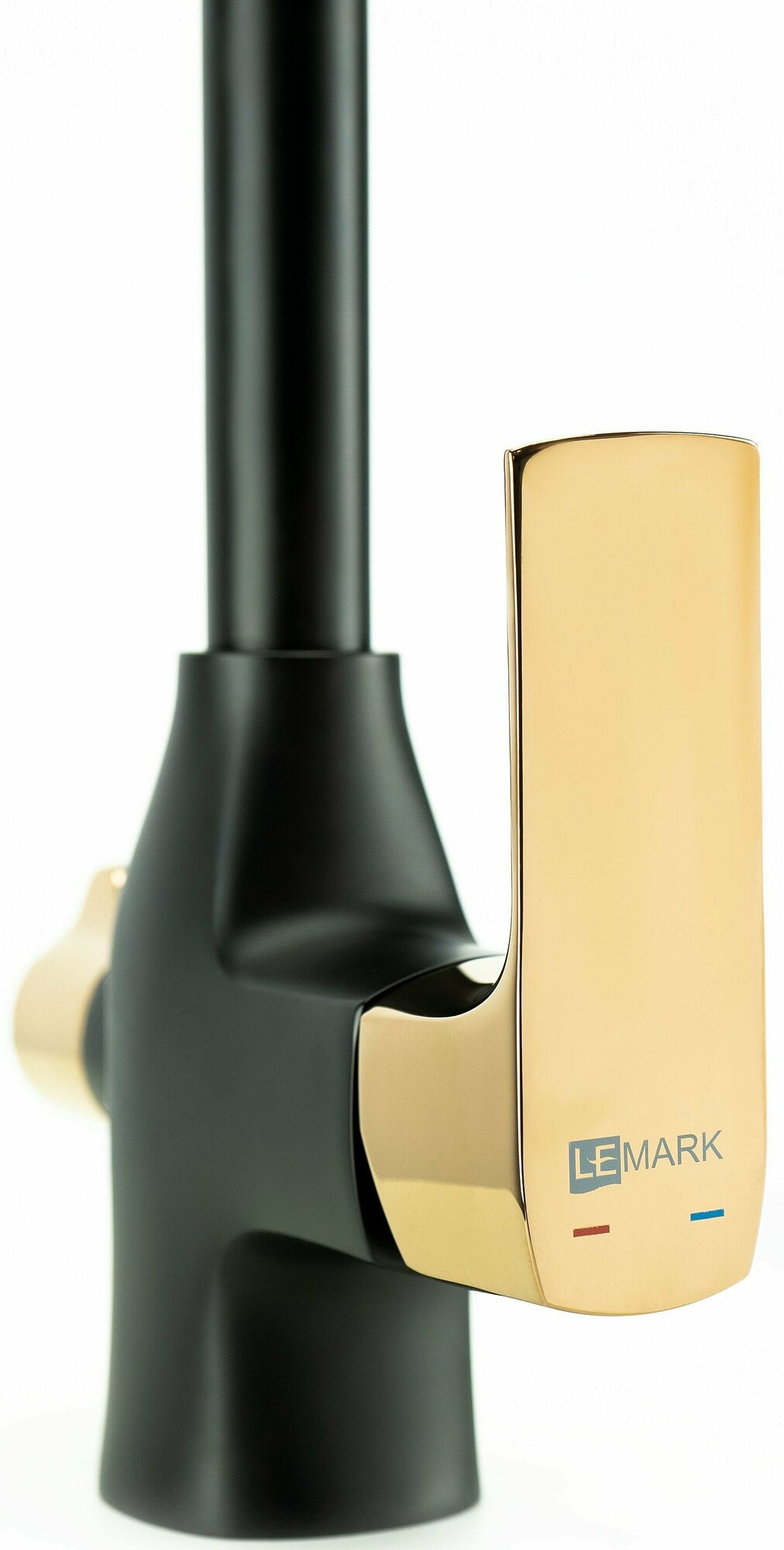 Смеситель для кухни, с подключением к фильтру питьевой воды Lemark Ursus черный/золото LM7261BLR