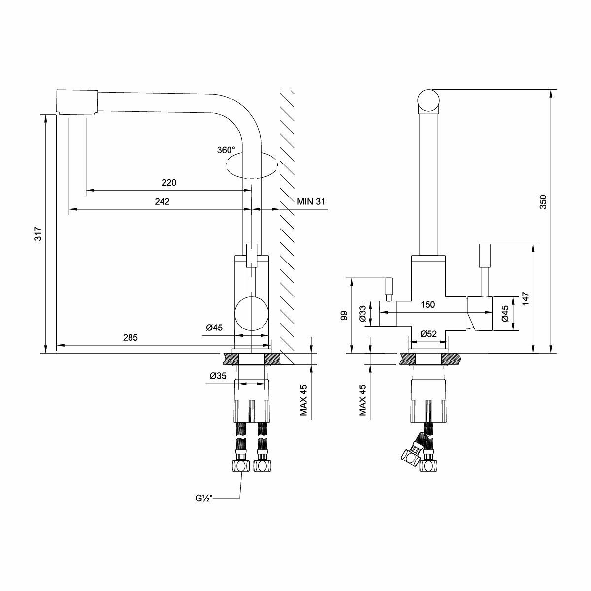 | Высота излива | 317 мм |