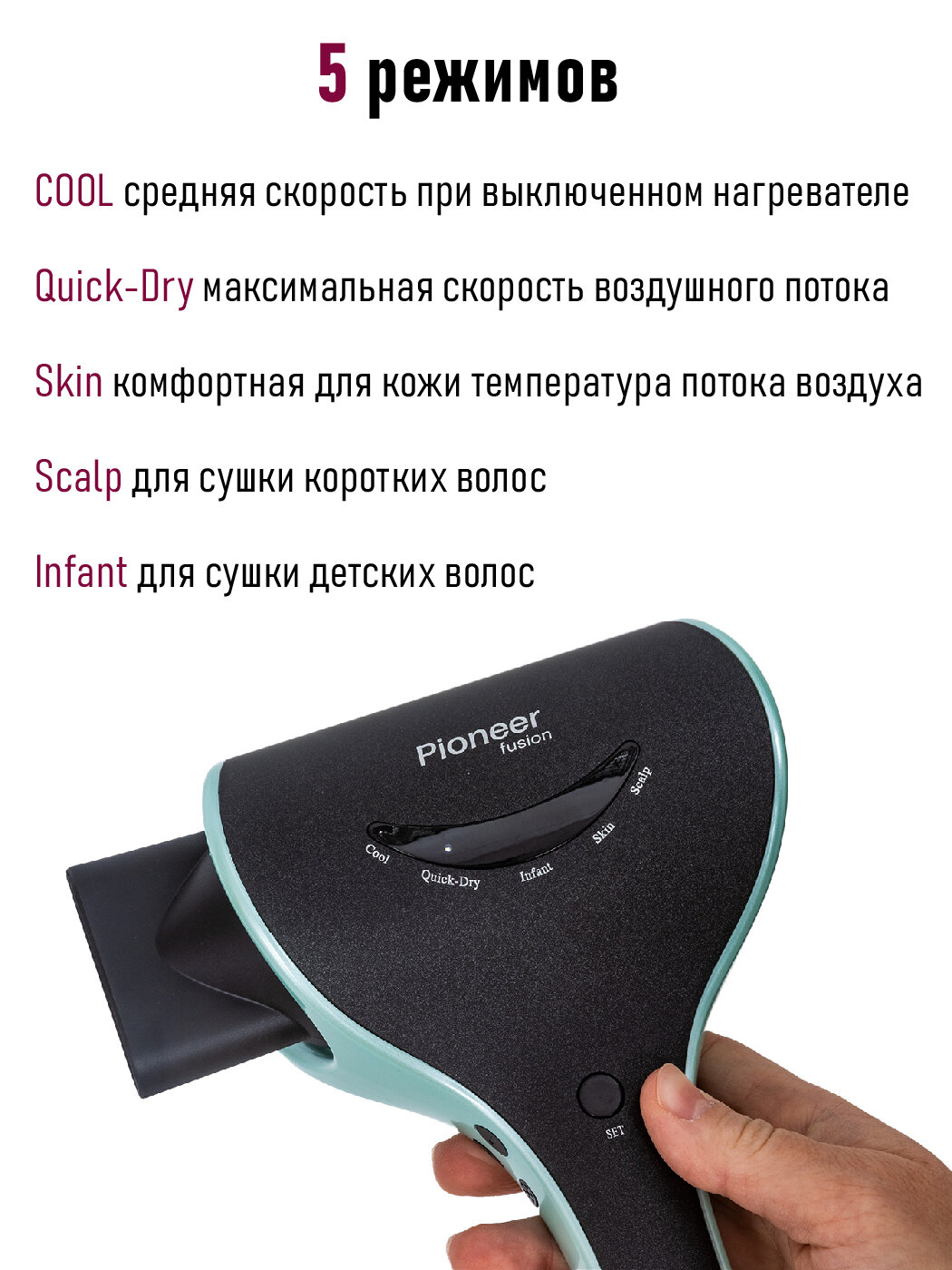 Фен Pioneer HD-2500DC (2000Вт, концентратор, 3 режима температуры, инновационный дизайн)