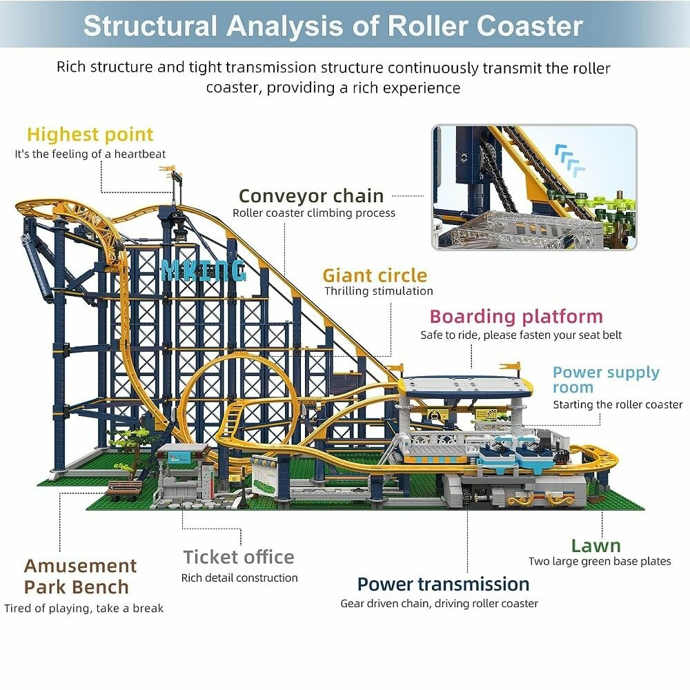 Купить Конструктор Mould King 11012 Американские горки, Игровая площадка, трековые строительные игрушки,3024 деталей